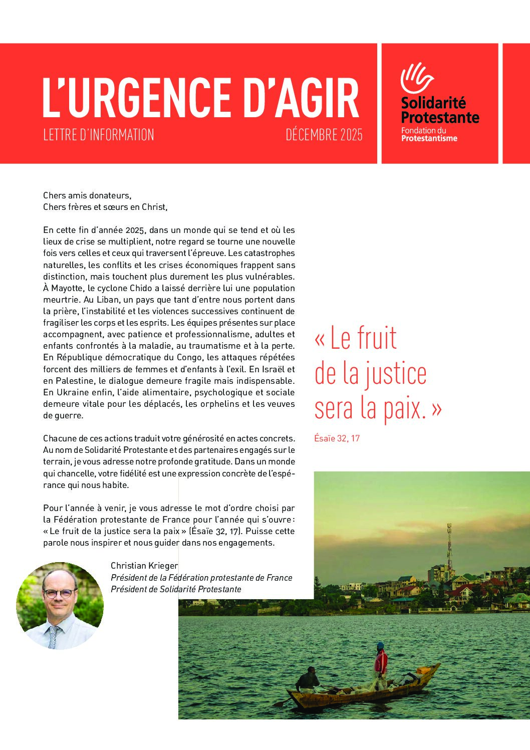 La plateforme Solidarité Protestante dispose d’une lettre annuelle pour faire un bilan des actions engagées.
